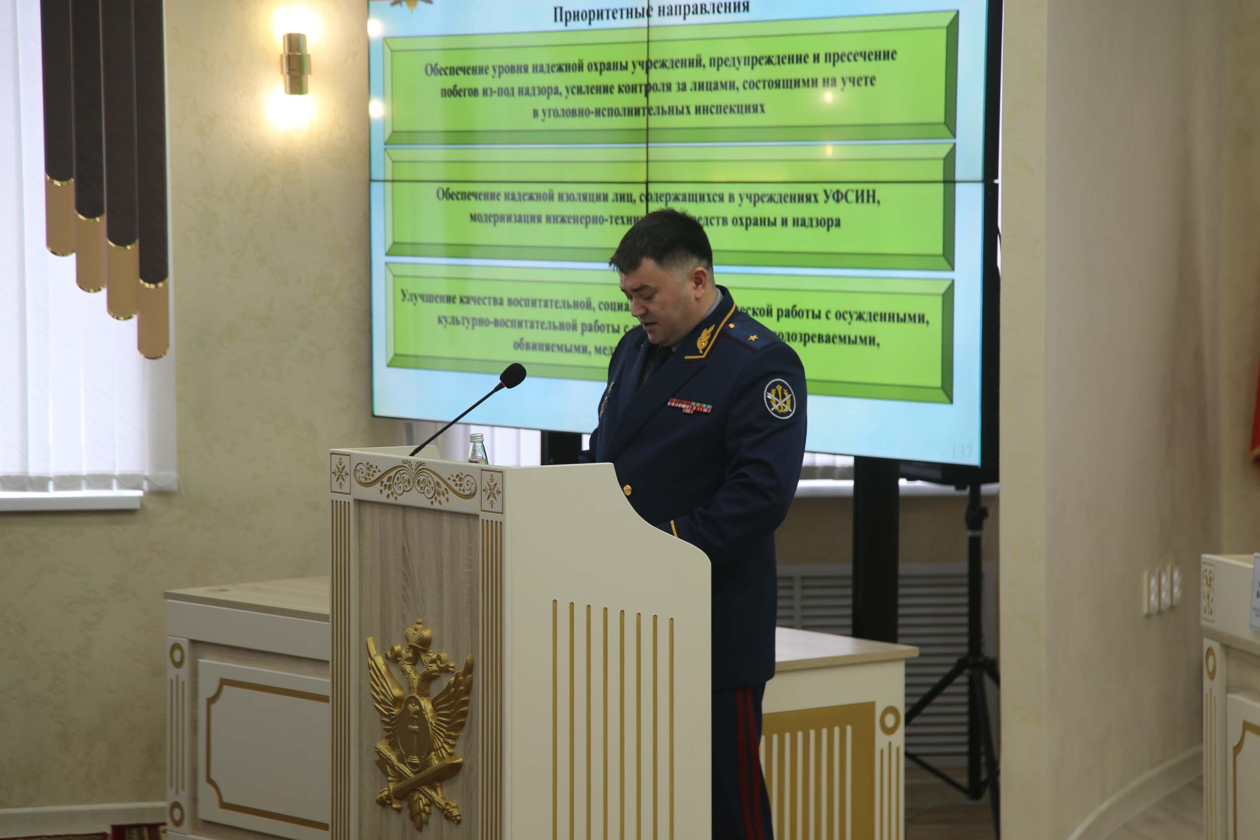 В ходе заседания с основным докладом выступил начальник УФСИН России по Омской области Сергей Балдин. Он представил детальный анализ оперативно-служебной, хозяйственной и финансовой деятельности подведомственных учреждений за минувший год. Также в докладе были обозначены приоритетные цели на 2026 год, сфокусированные на повышении эффективности и совершенствовании работы уголовно-исполнительной системы региона.